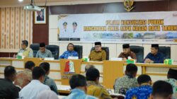 Rapat pembahasan peraturan Bupati terkait Inovasi Daerah dipimpin Asisten II Setdakab M Ali S.Sos MSi didampingi Kepala Bappeda Rahmawati S.Pd dan Kabag Hukum Rafzan Amin SH M.Hum yang diikuti oleh Kepada OPD lingkup Pemkab Aceh Besar.