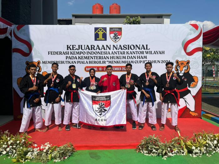 Peringkat dan prestasi tersebut bagi petarung-petarung Aceh diperoleh, usai meraih 1 medali emas, 3 perak dan 5 medali perunggu. “Alhamdulillah, ada 9 medali yang berhasil kita dapatkan pada kompetisi tersebut. Tentunya ini hasil yang sangat positif,”ujar Kepala Kantor Wilayah Kemenkumham Aceh, Meurah Budiman kepada media, Sabtu 21 September 2024.
