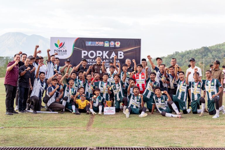 Habapublik.com, Kota Jantho: Tim sepak bola Kecamatan Blang Bintang berhasil keluar sebagai juara dan sekaligus meraih medali emas pada Pekan Olahraga Kabupaten Aceh Besar (PORKAB) 2025. Dalam laga final yang berlangsung sengit, Blang Bintang sukses membungkam Pulo Aceh dengan skor telak 3-0, di Stadion Jantho Sport City (JSC) Kota Jantho, Aceh Besar, Kamis (11/9/2025) sore.