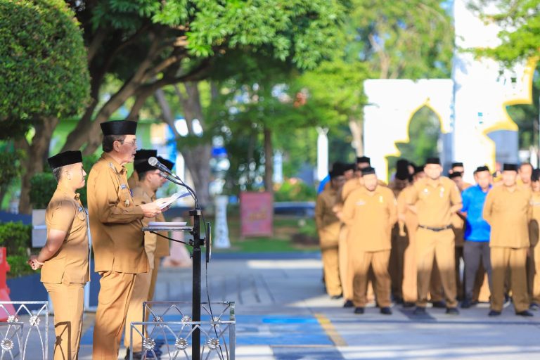 Habapublik.com, Banda Aceh : Penjabat (Pj) Wali Kota Banda Aceh Amiruddin memimpin apel gabungan perdana 2024 di halaman balai kota pada Senin, 8 Januari 2024. Seluruh ASN/Non ASN dari seluruh OPD Pemko Banda Aceh tampak memadati kantor wali kota tersebut.