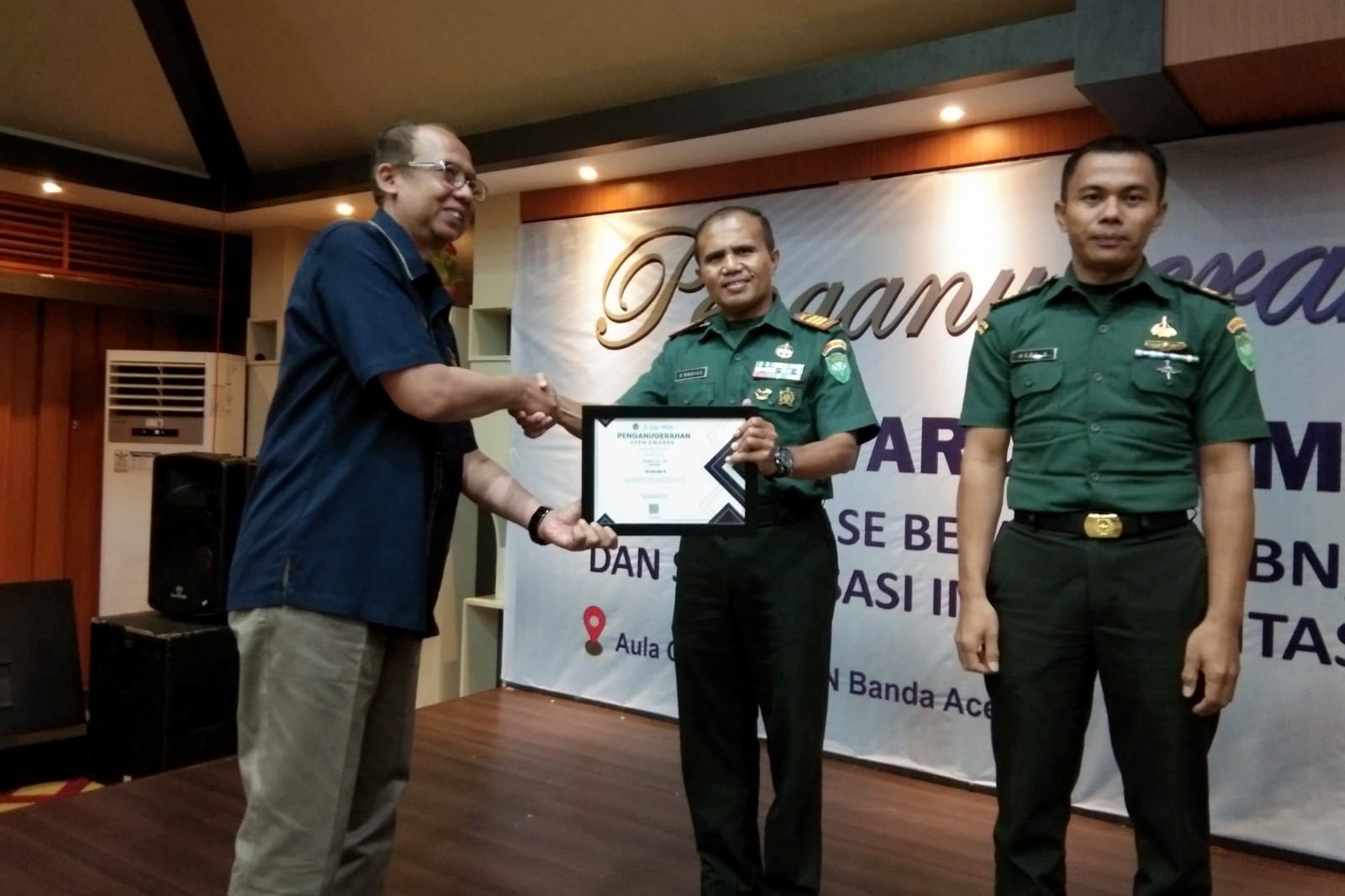 Penghargaan bergengsi tersebut diterima oleh Komandan Kodim 0101/Kota Banda Aceh, Letkol Czi Widya Wijanarko, S.Sos., M.Tr (Han) diwakili oleh Pgs. Perwira Seksi Perencanaan (Pasi Ren) Kapten Inf Sutan Radius di Aula Gedung D lantai V PPN Banda Aceh, Jalan Tgk. Chik Di Tiro, Kota Banda Aceh, Rabu (28/2/2024).