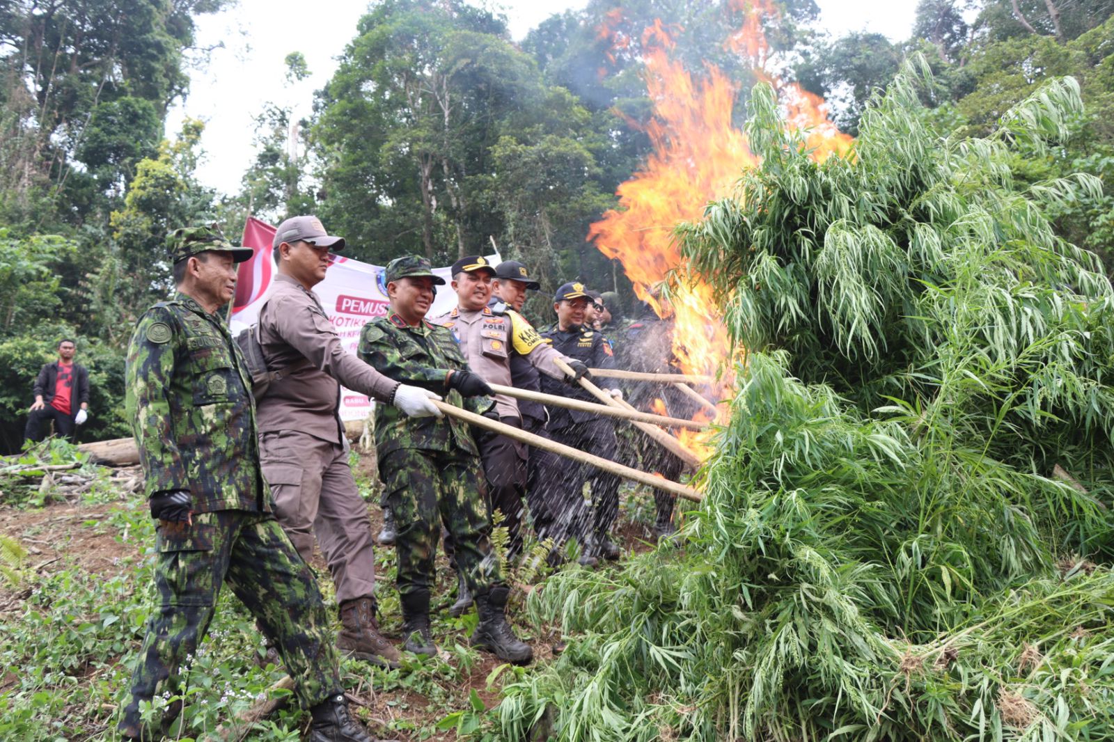 Pemusnahan ladang ganja tersebut digelar oleh Tim Badan Narkotika Nasional Republik Indonesia (BNN RI) yang dipimpin langsung oleh Dir Narkotika BNN RI Brigjend Pol.Ruddi Setiawan, S.I.K.,S.H.,M.H.