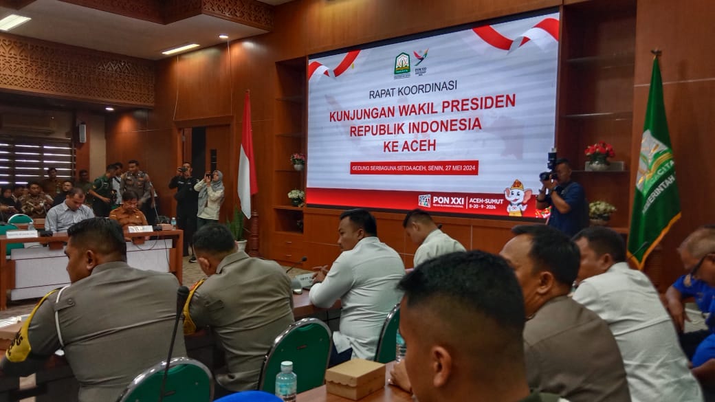 Rapat Koordinasi tersebut dipimpin Asisten Administrasi Umum Sekda Aceh, Dr. H. Iskandar, AP, S.Sos, M.Si, turut hadir Protokol Sekretariat Wakil Presiden RI, Paspampres, Kapolda Aceh, Pangdam IM, Pj Bupati Aceh Besar yang diwakili Sekda Aceh Besar, Pj Walikota Banda Aceh yang diwakili Sekda Kota serta pihak-pihak terkait.