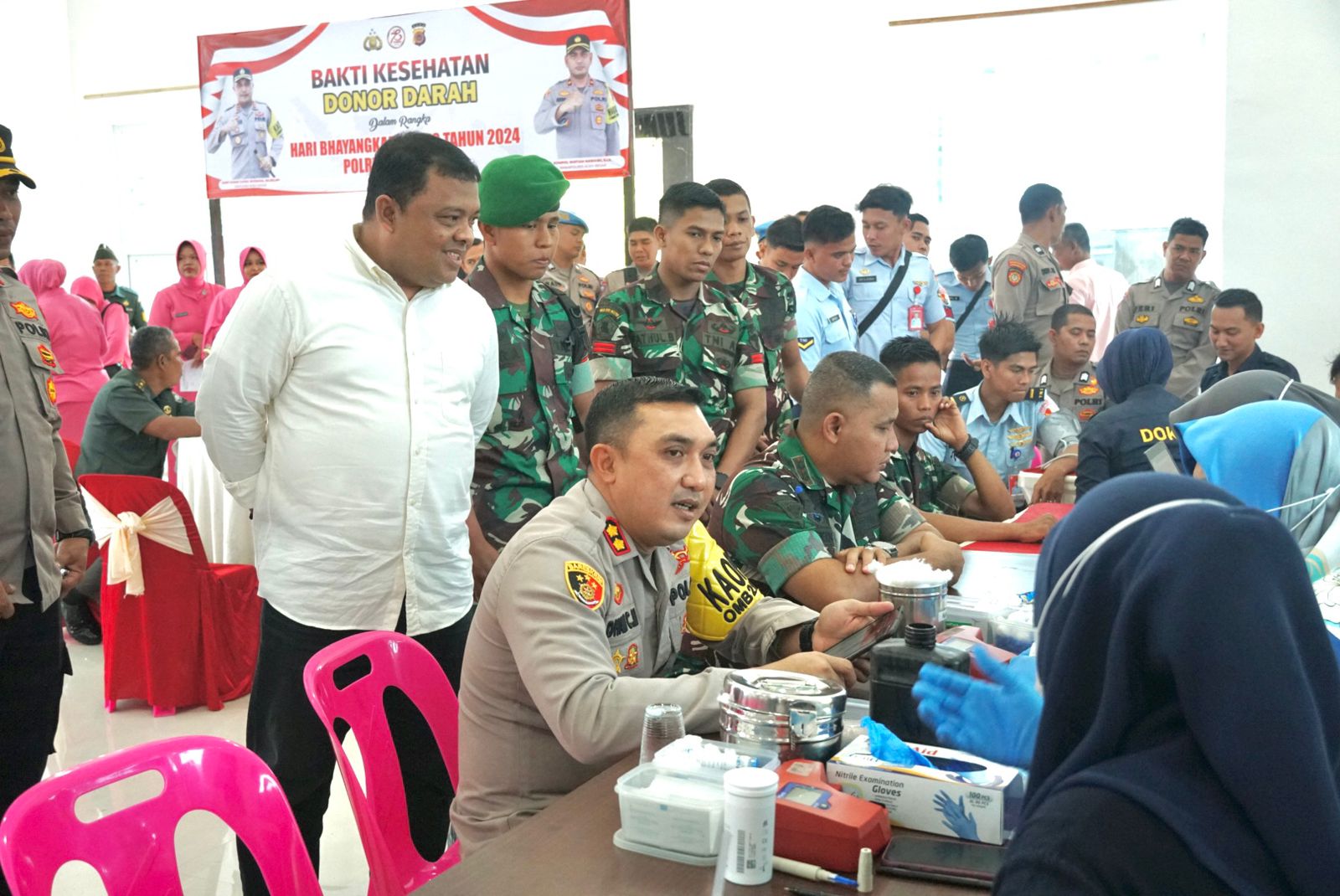 Kegiatan Bakti Kesehatan Donor Darah dalam rangka Hari Bhayangkara ke-78 yang di laksanakan oleh Dokkes Polres Aceh Besar bekerja sama dengan UTD PMI Kota Banda Aceh dapat dikumpulkan sebanyak 82 Kantong darah.