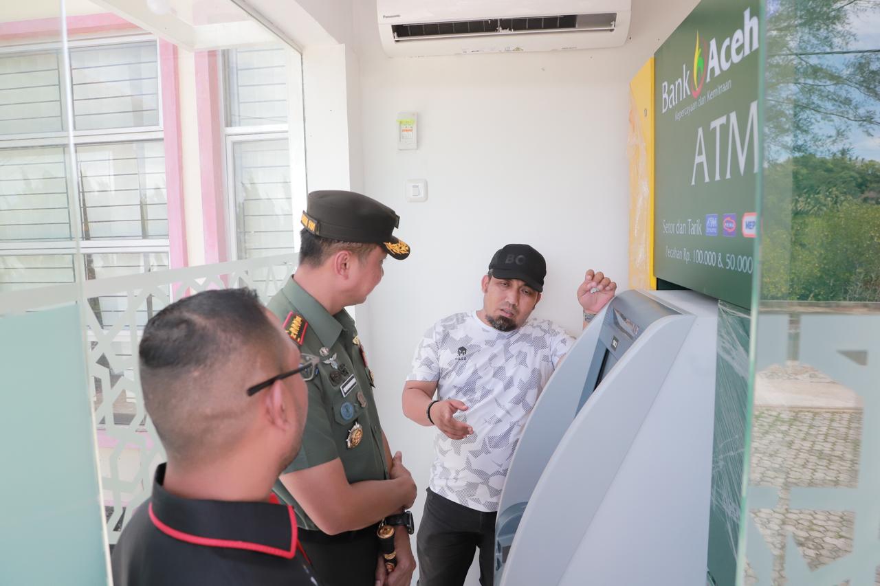 Pj Bupati Aceh Besar Muhammad Iswanto S.STP, MM bersama Komandan Kodim 0101/KBA dan Pimpinan Bank Aceh Cabang Kota Jantho, Afzal Ilmi kunjungi Lokasi ATM Bank Aceh di Mess BPKS di Gampong Lampuyang, Kecamatan Pulo Aceh, Aceh Besar, Selasa (25/6/2024). FOTO/MC ACEH BESAR