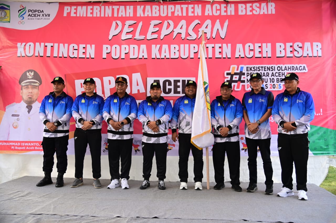 Habapublik.com, Kota Jantho : Penjabat (Pj) Bupati Aceh Besar Muhammad Iswanto SSTP MM melepas keberangkatan kontingen Popda Kabupaten Aceh Besar yang akan bertanding pada ajang Pekan Olahraga Pelajar Daerah Aceh (Popda) XVII yang berlangsung di Idi, Kabupaten Aceh Timur. Acara penglepasan berlangsung di Halaman Gedung Dekranasda, Gampong Gani, Ingin Jaya, Aceh Besar, Kamis (04/07/2024) petang.
