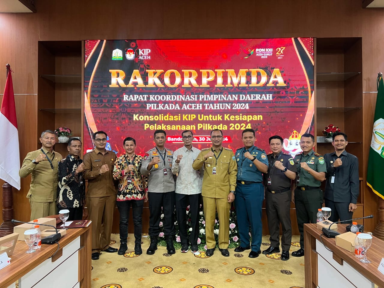 Pemerintah Kabupaten Aceh Selatan siap menyukseskan Pilkada Serentak Tahun 2024. Forkopimda Aceh Selatan foto bersama saat mengadakan Rakorpimda. Foto/Dok Zasrial.