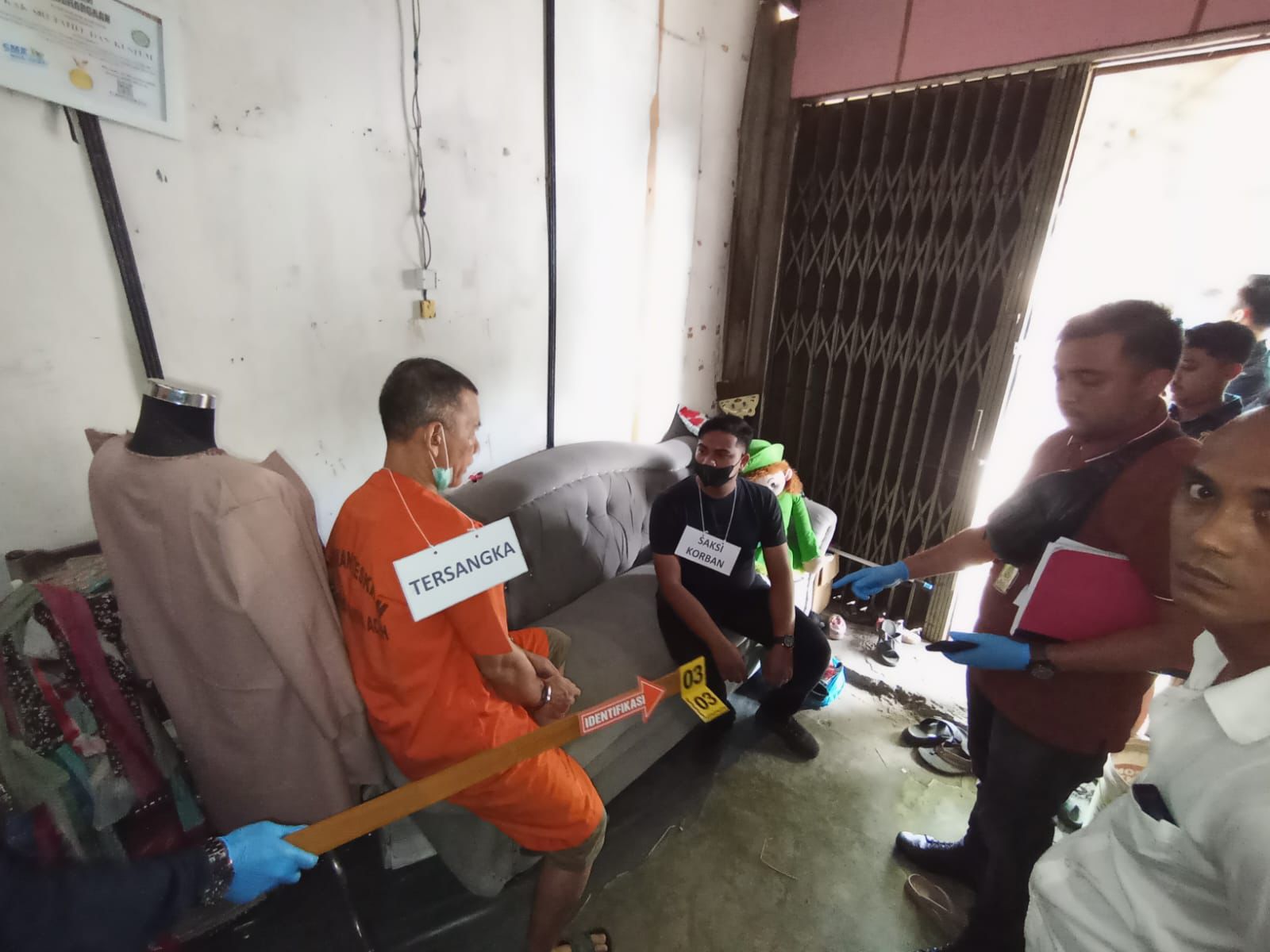 Rekonstruksi tersebut berlangsung di toko korban tepatnya kawasan Gampong Lam Hasan, Kecamatan Peukan Bada, Aceh Besar, Jumat (9/8/2024).
