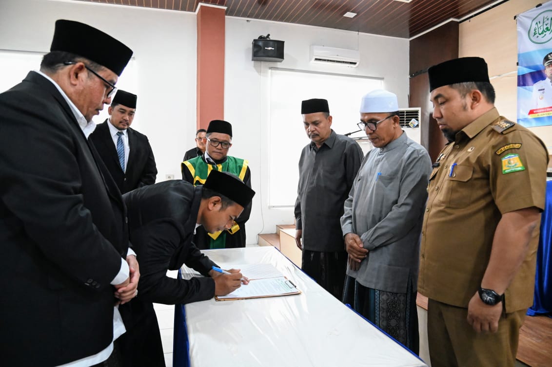Habapublik.com, Kota Jantho: Penjabat (Pj) Bupati Aceh Besar, Muhammad Iswanto SSTP MM, secara resmi mengukuhkan dua anggota Majelis Permusyawaratan Ulama (MPU) Kabupaten Aceh Besar, Pengganti Antar Waktu (PAW) periode 2022-2027. Pengukuhan ini dilaksanakan di ruang rapat Kantor Badan Perencanaan Pembangunan Daerah (Bappeda) Aceh Besar, Senin (2/9/2024).