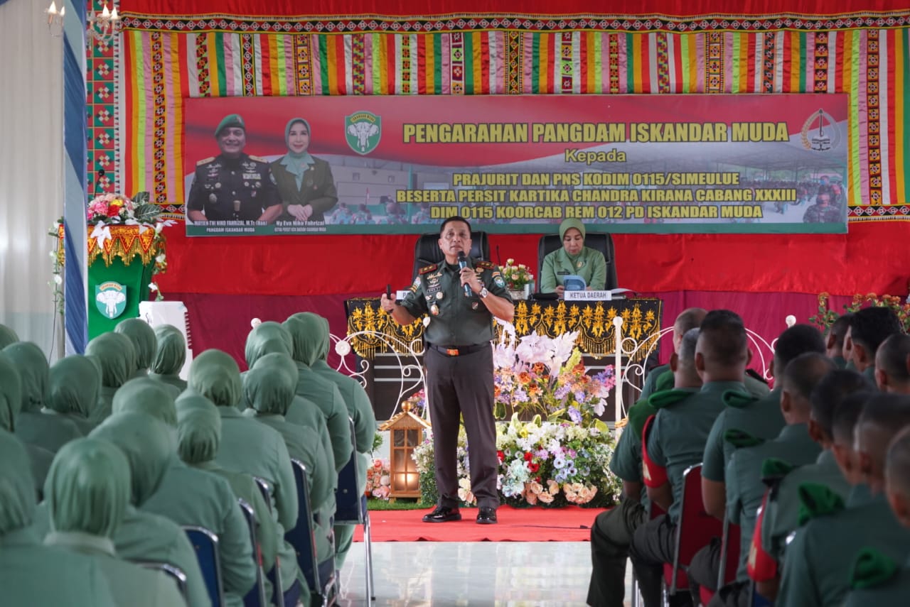 Dalam arahannya kepada para prajurit, PNS, dan anggota Persit Kodim 0115/Simeulue, Mayjen TNI Niko Fahrizal menyampaikan rasa syukur dan bangganya dapat hadir di tengah-tengah prajurit yang penuh semangat. Beliau berpesan agar seluruh personel selalu bersyukur, karena dengan bersyukur, nikmat yang diterima akan semakin bertambah.