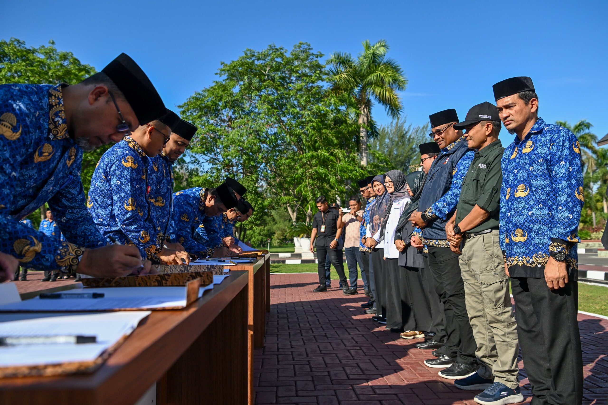 Usai pembacaan ikrar, para ASN menandatangani Integritas ASN, yang dimulai oleh Plh Sekda Aceh, Azwardi, yang diikuti oleh para Asisten Sekda, Staf Ahli, dan para Kepala SKPA pemerintah Aceh serta Kepala Biro di lingkungan Setda Aceh.