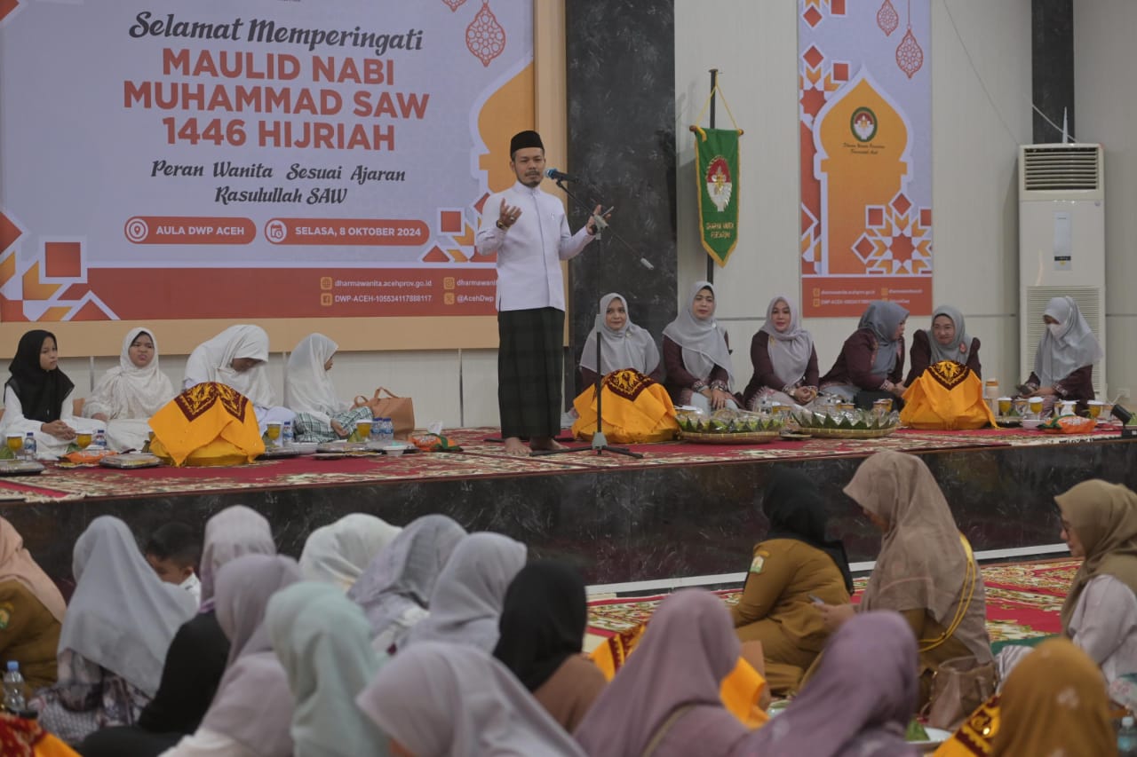 Dalam acara tersebut, Ustaz Masrul mengajak seluruh pengurus DWP Aceh untuk senantiasa meneladani kehidupan Rasulullah Muhammad SAW.