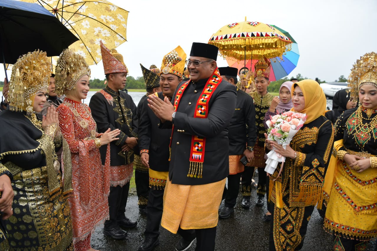 Pj. Gubernur Aceh, Dr. H. Safrizal, ZA. M. Si bersama Pj. Ketua TP-PKK Aceh, Hj. Safriati, M.Si serta rombongan tiba di Bandara Lasikin, Simeulue, Sabtu, 12/10/2024. Foto/Biro Adpim Setda Aceh.