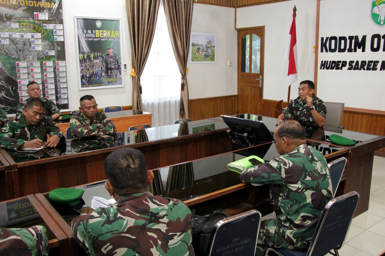 Persiapan acara tersebut dibahas dalam rapat koordinasi yang dipimpin langsung oleh Perwira Seksi Teritorial (Pasiter) Kodim 0101/Kota Banda Aceh, Mayor Inf Sumastono, di Aula Assembly Hall Darmawangsa, Makodim 0101/Kota Banda Aceh, Senin (21/10/2024). Rapat ini dihadiri oleh para perwira staf, Danramil, dan Danposramil di lingkungan Kodim 0101/Kota Banda Aceh.