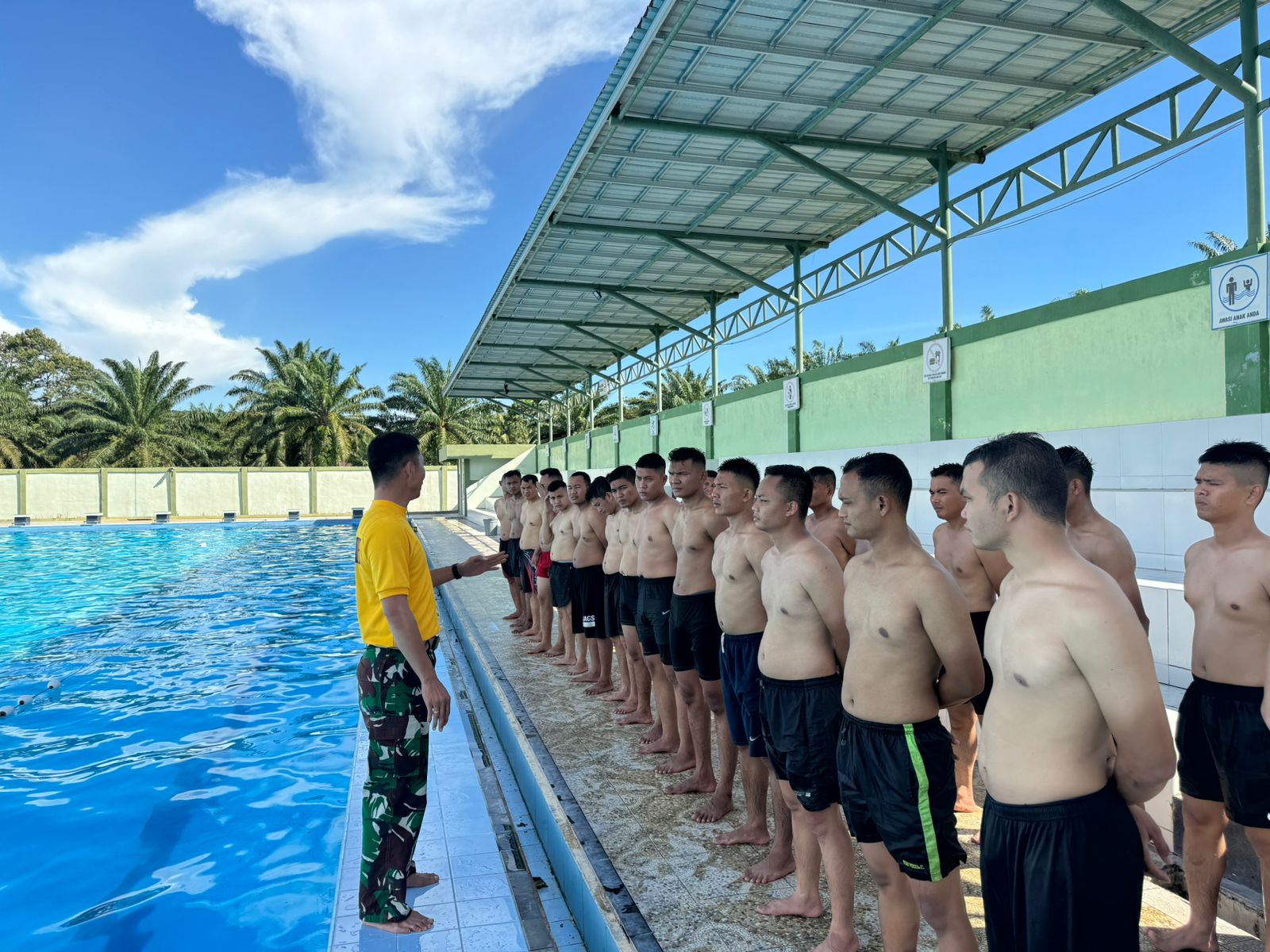 Kegiatan ketangkasan renang dasar diikuti oleh seluruh prajurit yang sudah melaksanakan garjas yakni Garjas “A” lari 12 menit dan Garjas “B” Pull Up, Sit Up, Push Up dan Shuttle Run.(*)