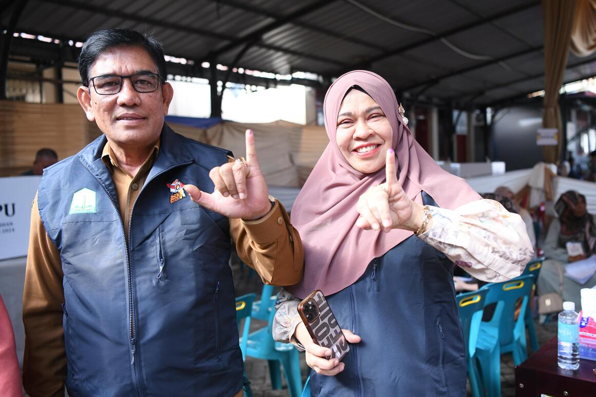 Habapublik.com,Banda Aceh : Plt Sekda Aceh, Muhammad Diwarsyah, bersama istrinya, menyalurkan hak suaranya di TPS 1, Gampong Ie Masen Kayee Adang, Kecamatan Syiah Kuala, Banda Aceh, pada Rabu, 27 November 2024.