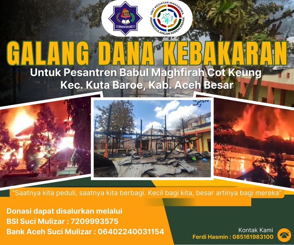 UKM-PK UTU Lakukan Galang Dana Untuk Kebakaran Pesantren Babul Maghfirah, Aceh Besar
