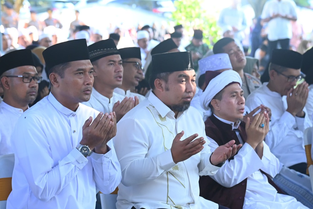 Dalam kesempatan itu, Pj Bupati Aceh Besar Muhammad Iswanto dan Forkopimda juga menyerahkan santunan kepada anak yatim.