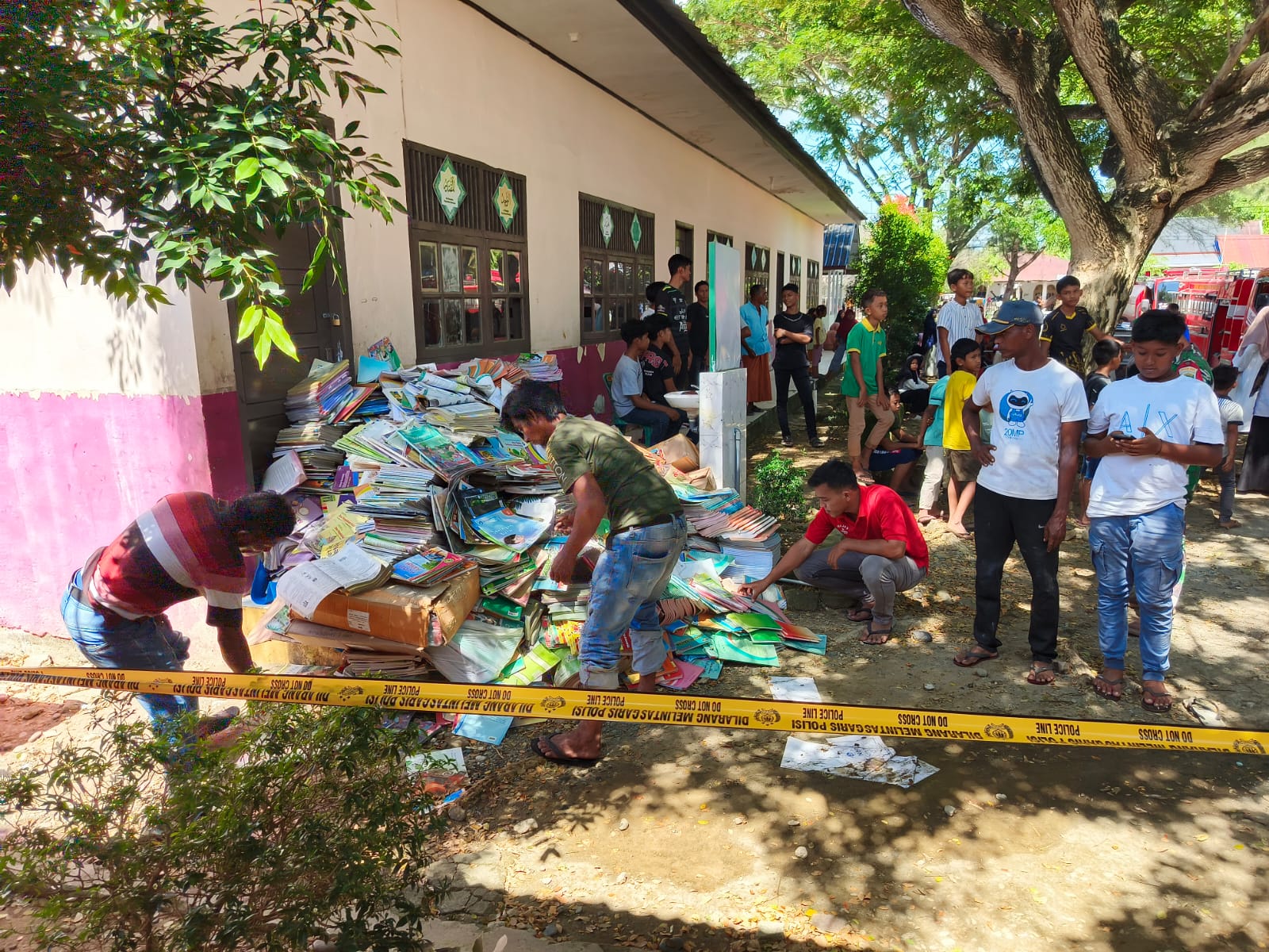 “Setiba dilokasi kejadian api sudah mulai mengecil, berkat sigapnya dan kerjasama masyarakat di sekitar dalam upaya pemadaman secara manual/gotong royong dan sebahagian menyelamatkan buku di Perpustakaan sekolah, karena saat kejadian kebakaran sekolah sedang libur”, kata Ridwan.