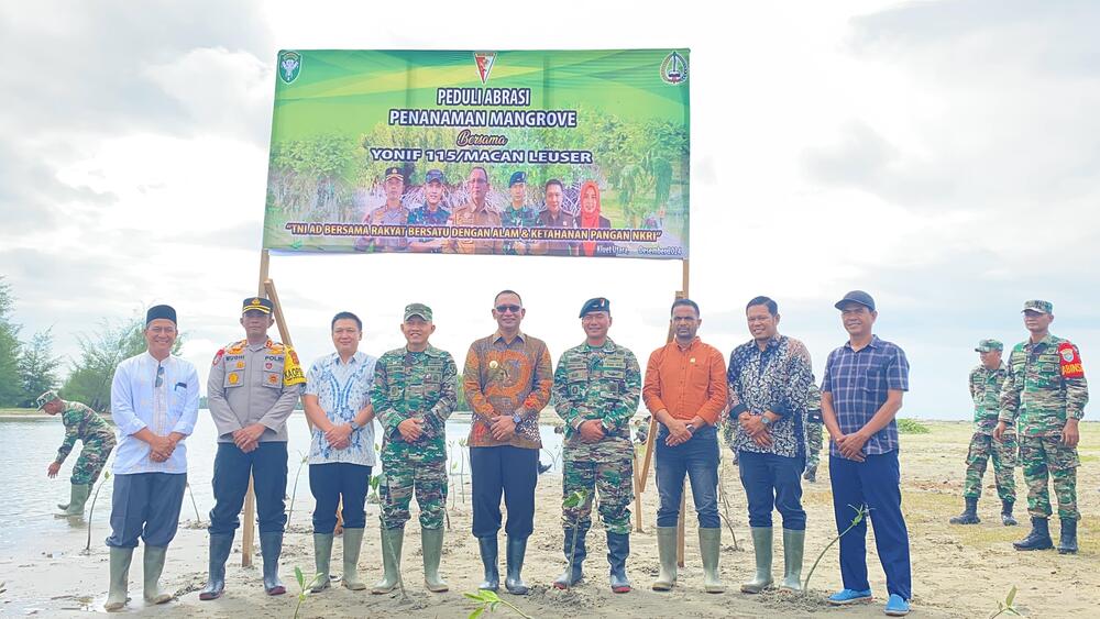 Kegiatan ini turut dihadiri Pj. Bupati Aceh Selatan, Cut Syazalisma, S.STP., M.Si., beserta jajaran Forkopimda dan dinas terkait dan masyarakat setempat. Penanaman mangrove ini secara simbolis ini juga sebagai bagian dari persembahan akhir tahun Yonif 115/Macan Leuser.