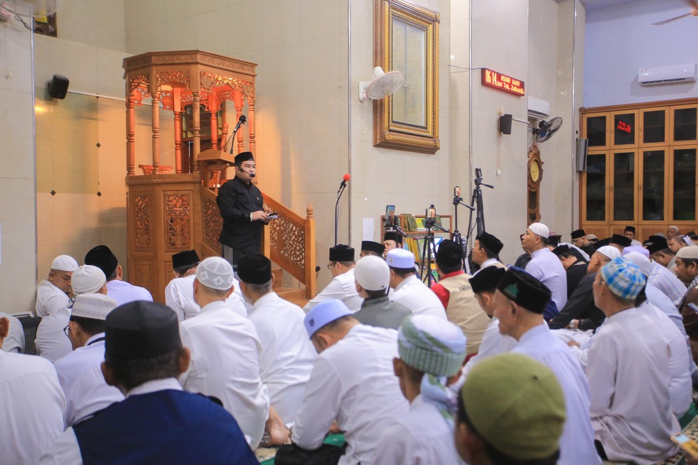 Usai shalat subuh berjamaah, Pj wali kota juga mengikuti zikir dan doa bersama warga dan jamaah Zikir Arafah yang di pimpin langsung oleh Ustad Zul Arafah.