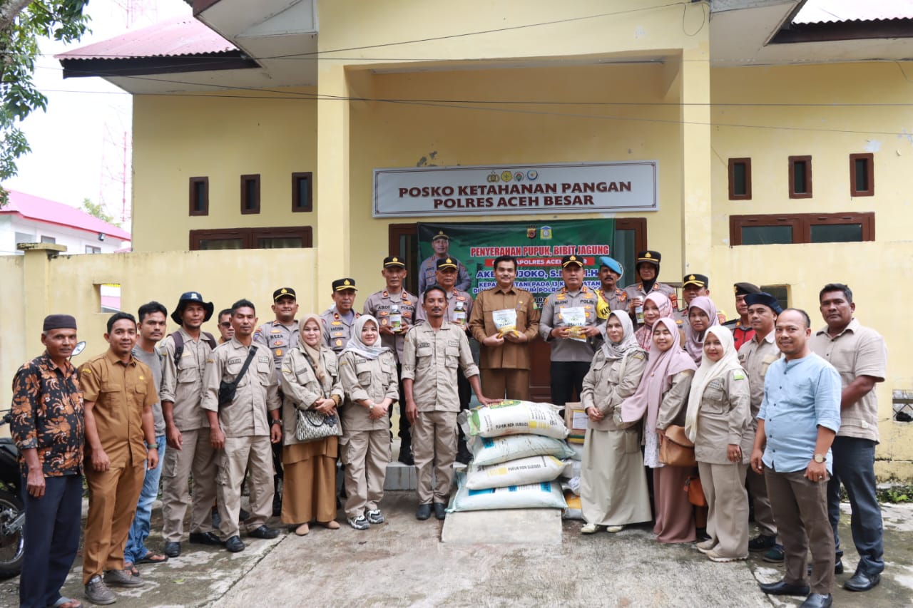 Sukseskan Program Ketahanan Pangan, Kapolres Aceh Besar Serahkan Pupuk Dan Bibit Jagung