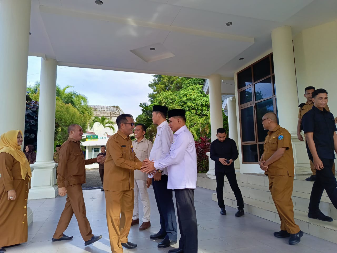 Usai pelaksanaan apel perdana bersama Bupati dan Wakil Bupati Aceh Selatan periode 2025-2030, seluruh jajaran Pemerintah Kabupaten Aceh Selatan melakukan salam-salaman dengan Bupati dan wakil bupati yang baru dilantik itu.