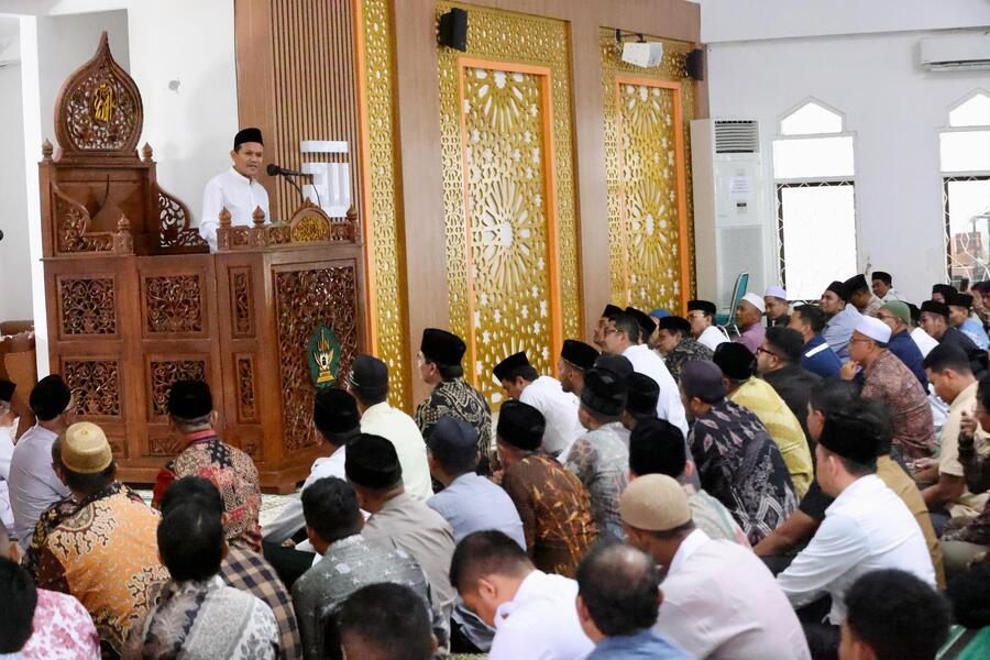 Wakil Gubernur Aceh, Fadhlullah, S.E., menyampaikan ceramah (Kultum) Ramadan 1448H didahului Shalat Zuhur berjamaah, di Masjid Fathun Qarib UIN Ar-Raniry Banda Aceh, Rabu, 5/3/2025. Foto/Biro Adpim Setda Aceh.
