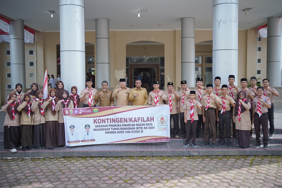 Habapublik.com, Suka Makmue: Bupati Nagan Raya, Provinsi Aceh, Dr. TR. Keumangan, S.H., M.H. secara resmi melepas Kontingen Gerakan Pramuka Kwartir Cabang (Kwarcab) Nagan Raya untuk mengikuti Musabaqah Tunas Ramadan (MTR) XXIV yang akan berlangsung di Kabupaten Aceh Barat mulai 12 hingga 17 Maret 2025.