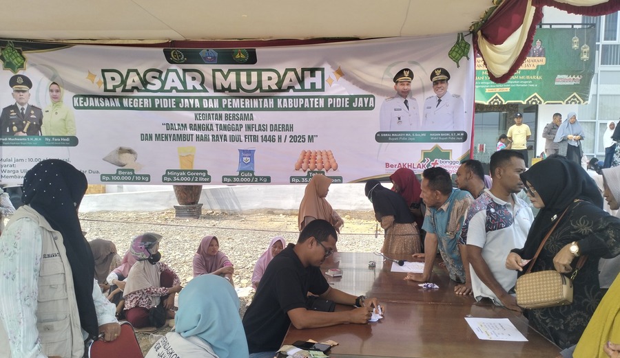 Pergelaran pasar murah bagi masyarakat ini ekses terdampak inflasi dan menyambut Hari Raya Idul Fitri 1446 H yang tinggal hitungan sepekan lebih lagi. Hal tersebut mendapat apresiasi dari Bupati Pidie Jaya H Sibral Malasyi MA, atas inisiatif Dinas Perindustrian, Perdagangan dan Koperasi.