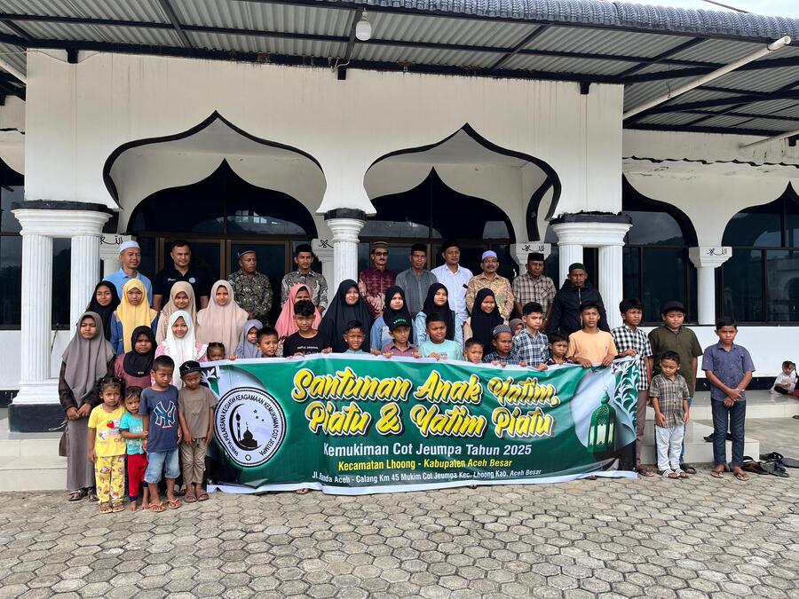 Habapublik.com,Aceh Besar: Forum Mukim Cot Jeumpa Kecamatan Lhoong Aceh Besar membagikan santunan kepada 35 orang Anak Yatim dan Yatim Piatu di Kemukiman Cot Jeumpa kecamatan Lhoong pada Hari Minggu (23/3/2025) di Masjid Al Qurban setempat.