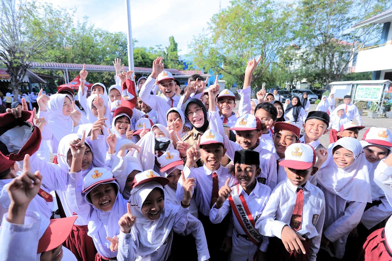 Habapublik.com, Banda Aceh: Keceriaan terpancar dari wajah para siswa Sekolah Dasar Negeri 20 Banda Aceh saat menyambut kedatangan Wali Kota Banda Aceh, Illiza Sa’aduddin Djamal, pada Senin pagi, 21 April 2025.