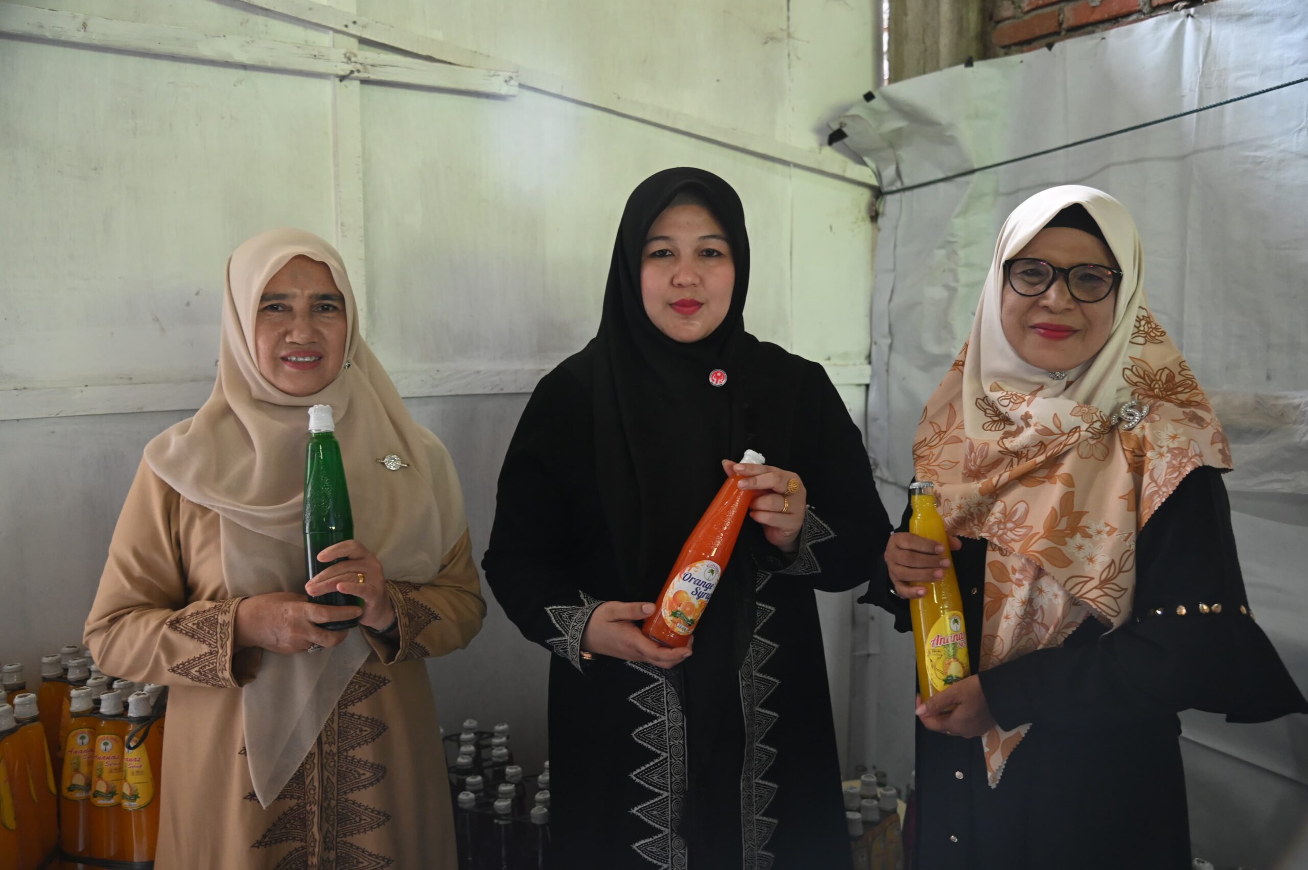 Habapublik.com, Kota Jantho: Ketua Dekranasda Aceh Besar Rita Mayasari mengunjungi dan memborong sirup Kelapa Gading produk asli Aceh Besar di Gampong Cot Seunong, Kecamatan Montasik, Sabtu (10/05/2025).