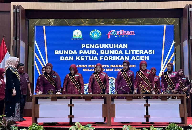 Pengukuhan dilakukan langsung oleh Bunda PAUD, Bunda Literasi, dan Ketua FORIKAN Provinsi Aceh, Ny. Marlina Muzakir, dalam sebuah prosesi yang berlangsung di Anjong Mon Mata, Banda Aceh, pada Selasa (20/5/2025).