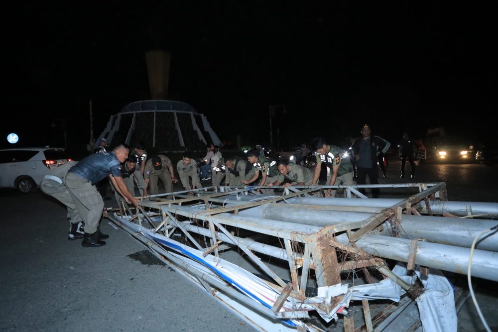 Di sana ia menyaksikan pembongkaran tiang reklame yang melibatkan tim gabungan yang terdiri dari petugas Satpol PP/WH, PUPR, DLHK3, DPMPTSP, Dishub, dan unsur kepolisian.