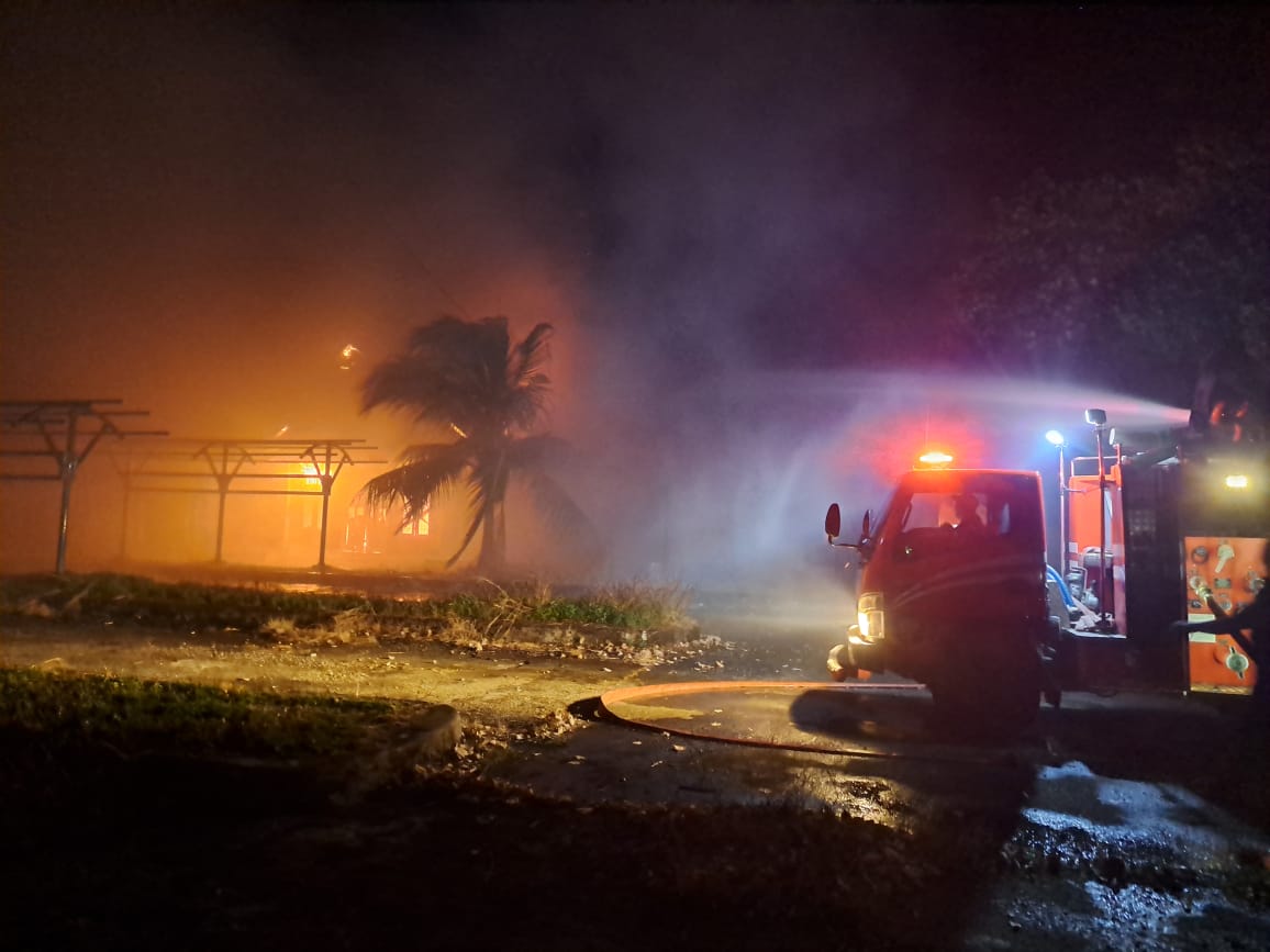 Plt. Kalak BPBK Aceh Barat Daya, Nazaruddin, S.Pd. MM. melalui Kabid. Pencegahan, Kesiapsiagaan dan Penanggulangan Kebakaran menurunkan 4 (empat) unit armada Damkar 2 (dua) unit armada dari pos induk Blangpidie, 1 (satu) unit dari pos Kuala Batee, dan 1 (satu) unit armada dari Pos Manggeng