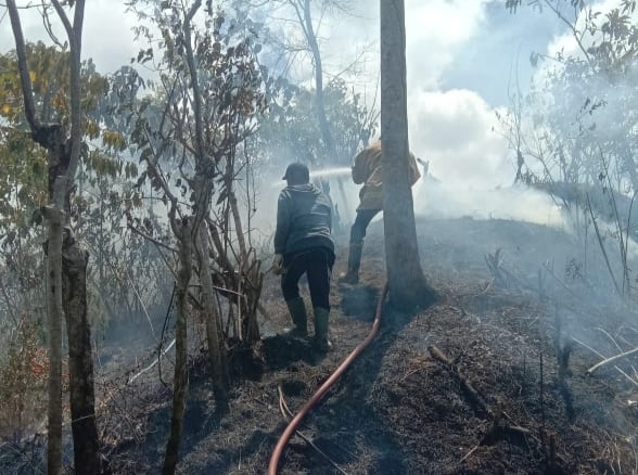 Habapublik.com, Aceh Besar: Cuaca panas disertai angin kencang yang melanda Aceh Besar dan sekitarnya membuat api dengan cepat membesar dan membakar sebuah kebun di Gampong Suka Mulia Kecamatan Lembah Seulawah Kabupaten Aceh Besar, peristiwa itu terjadi Minggu (13/7/2025) sekitar pukul 13.06 Wib.