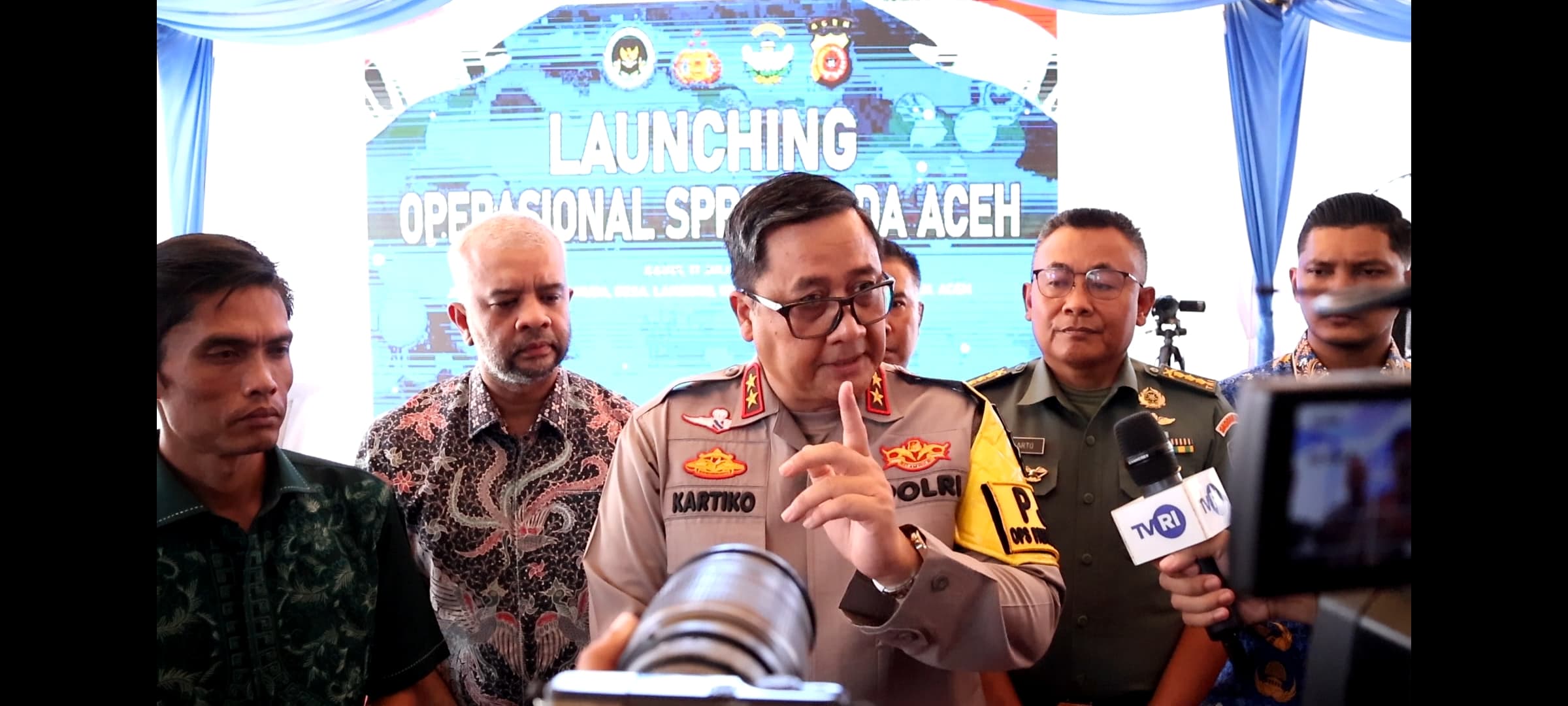 Kapolda Aceh Irjen Pol. Dr. Achmad Kartiko memberikan keterangan kepada wartawan usai meresmikan Satuan Pelayanan Pemenuhan Gizi (SPPG) Polda Aceh yang berlokasi di Desa Lambung, Kecamatan Meuraxa, Kota Banda Aceh pada Kamis, 17 Juli 2025. Foto/Humas Polda Aceh.