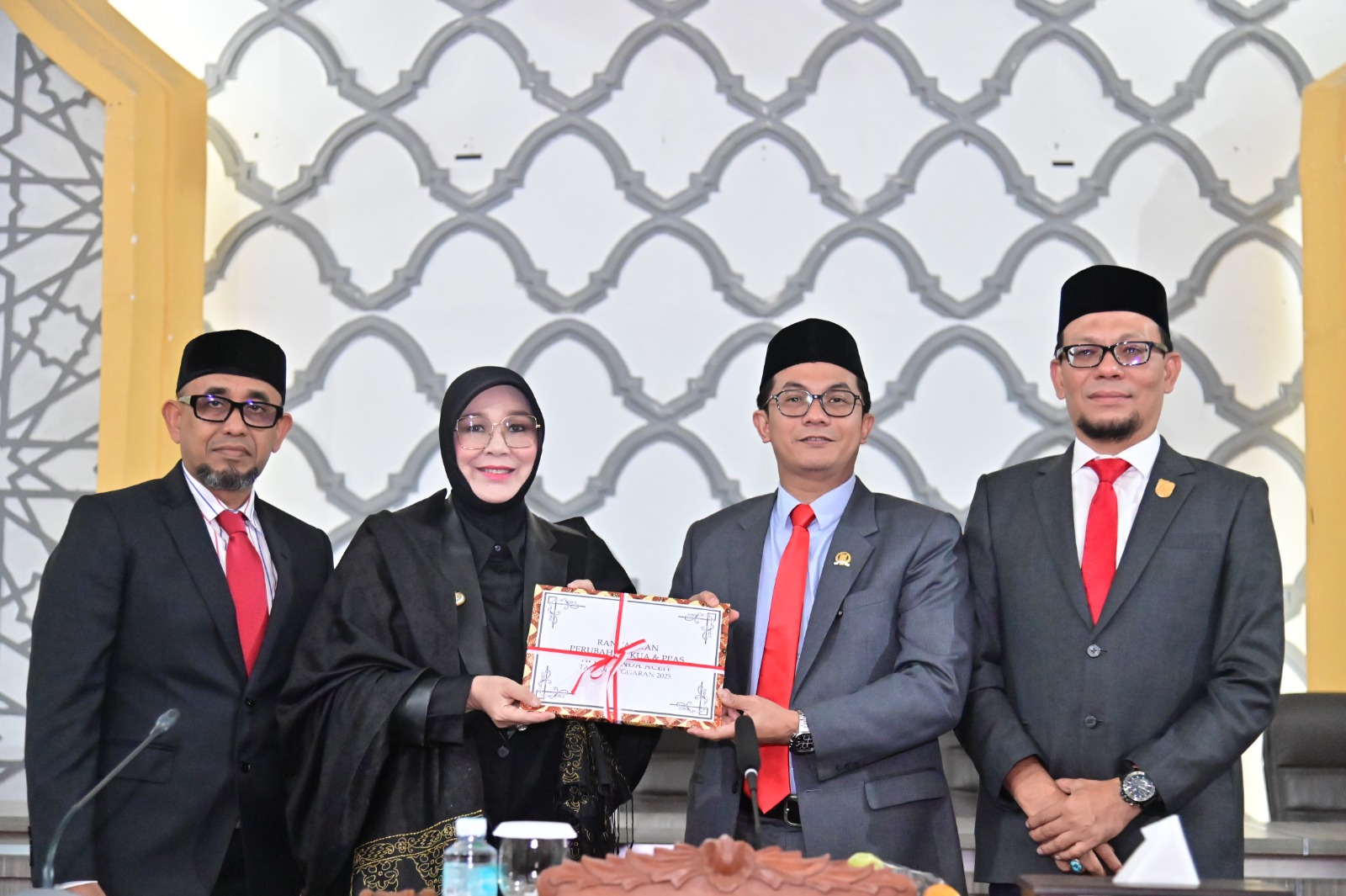 Habapublik.com, Banda Aceh: Wali Kota Banda Aceh, Illiza Sa’aduddin Djamal menyerahkan dokumen Rancangan Kebijakan Umum Anggaran dan Prioritas Plafon Anggaran Sementara (RKUA-PPAS) APBK-P 2025 kepada Ketua DPRK Banda Aceh, Irwansyah ST yang didampingi Wakil Ketua, Dr Musriadi Aswad M.Pd.