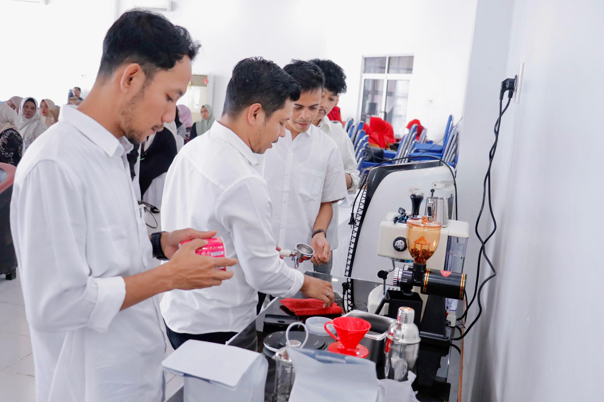 Habapublik.com, Meulaboh: Tim Penggerak Pemberdayaan Kesejahteraan Keluarga (TP PKK) Aceh Barat menggelar kegiatan pelatihan meracik kopi di Aula Badan Perencanaan Pembangunan Daerah (Bappeda) setempat pada Senin (4/8/2025).