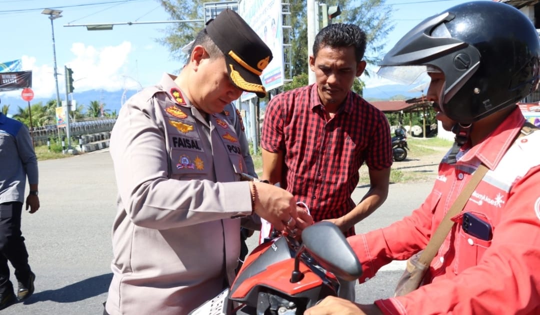 Aksi yang dipimpin langsung oleh Kapolres Pidie Jaya ini dilakukan persis di jalan Banda Aceh Medan, yakni di Sp. Jalan Layang Meureudu, Jumat (8/8/2025), dengan cara menyapa langsung para pengendara dan memasangkan bendera di kendaraan mereka