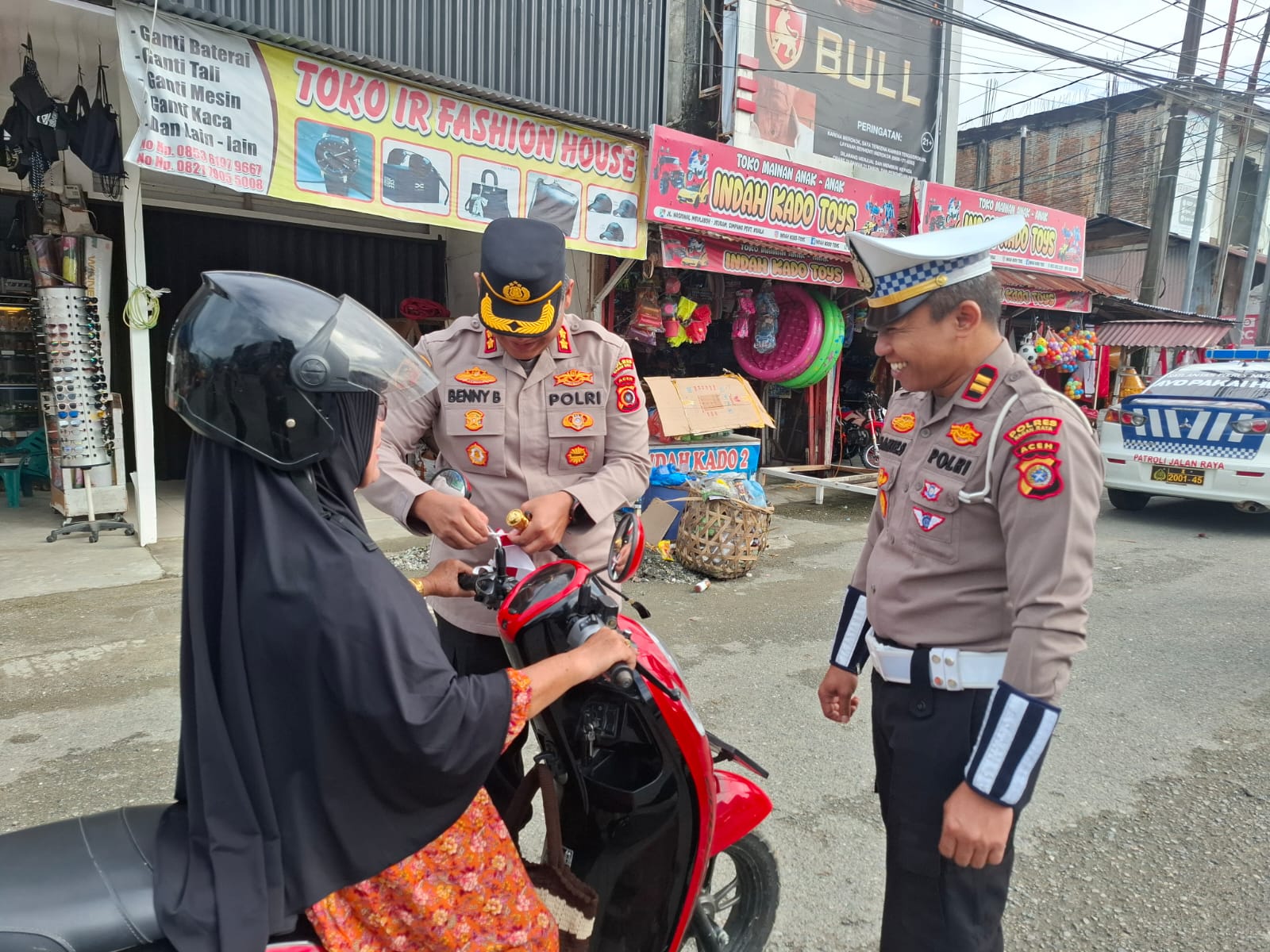 Selain membagikan bendera, Kapolres dan personel juga mengingatkan masyarakat untuk selalu tertib berlalu lintas, melengkapi surat-surat kendaraan, serta mematuhi aturan demi keselamatan bersama.