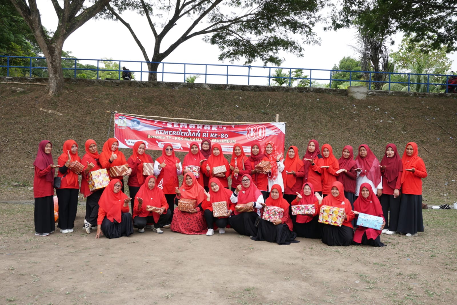 Habapublik.com, Kota Jantho: Dalam rangka menyemarakkan HUT ke-80 Kemerdekaan RI tahun 2025, Tim Penggerak PKK Kecamatan Seulimeum, Kabupaten Aceh Besar, melaksanakan gotong royong di lingkungan bendungan serta pemasangan bendera merah putih di sepanjang Jembatan Bendungan Krueng Aceh, Seulimeuem, Aceh Besar, Sabtu (16/8/2025).