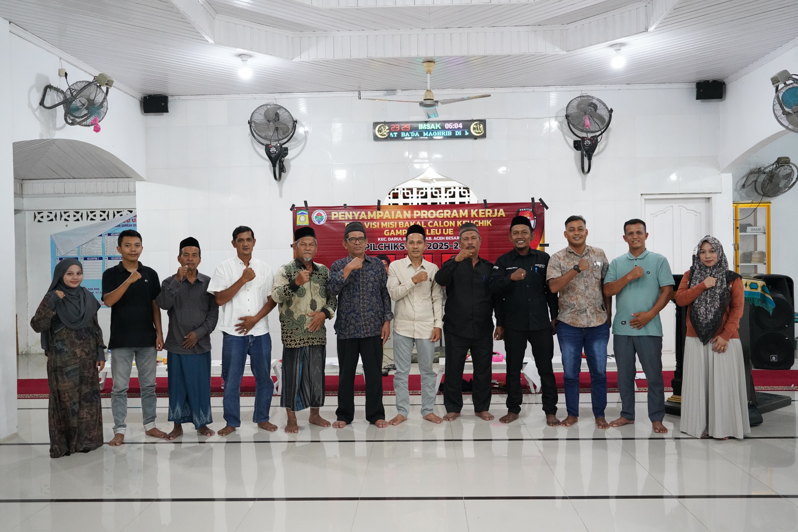 Habapublik.com, Aceh Besar: Kontestasi politik Pemilihan Keuchik Langsung (Pilciksung) Gampong Leu Ue Kecamatan Darul Imarah, Aceh Besar memasuki tahapan penyampaian visi, misi dan program kerja dari para bakal calon keuchik setempat. Pada kesempatan tersebut, juga dilakukan penarikan undian no urut calon keuchiek yang, berlangsung di Meunasah setempat, Minggu, 14/08/2026.