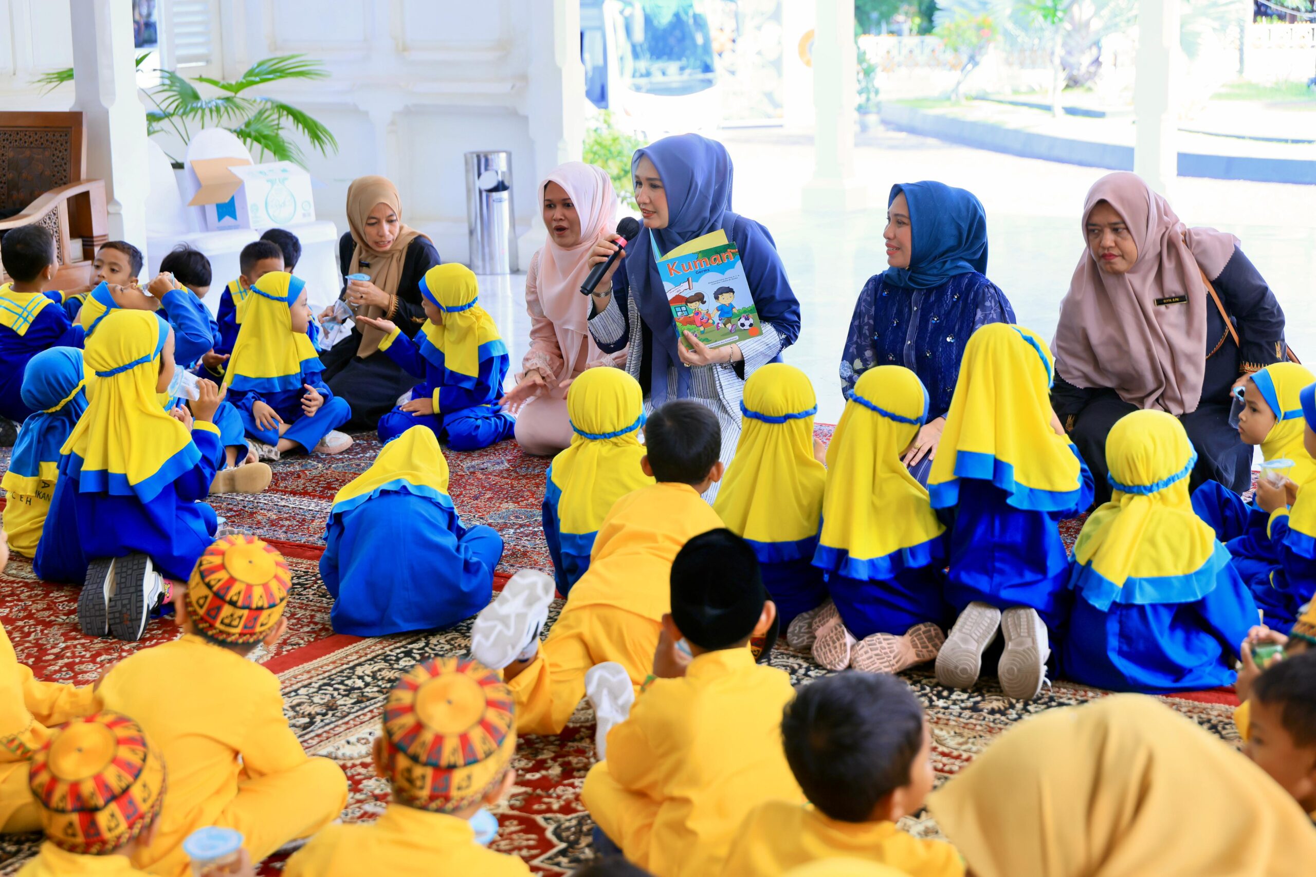 Habapublik.com, Banda Aceh: Bunda PAUD Aceh, Marlina Muzakir, didampingi Ketua Pokja Bunda PAUD Aceh, Mukarramah Fadhlullah, serta Wakil Ketua Pokja Bunda PAUD Aceh, Malahayati M. Nasir, menyambut ratusan anak-anak Pendidikan Anak Usia Dini (PAUD) di Pendopo Gubernur Aceh, Kamis (18/9/2025).