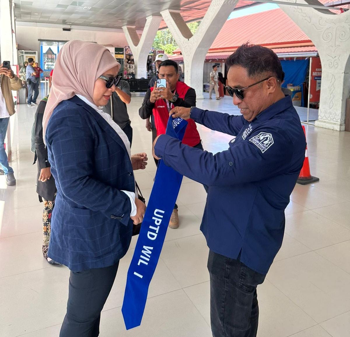Kedatangan mereka disambut langsung oleh Kepala UPTD Pelabuhan Wilayah 1, Husaini, S.E., MMTr, dengan pemasangan selempang dan persembahan kesenian tradisional Aceh Rapai Geleng yang menggema penuh semangat.