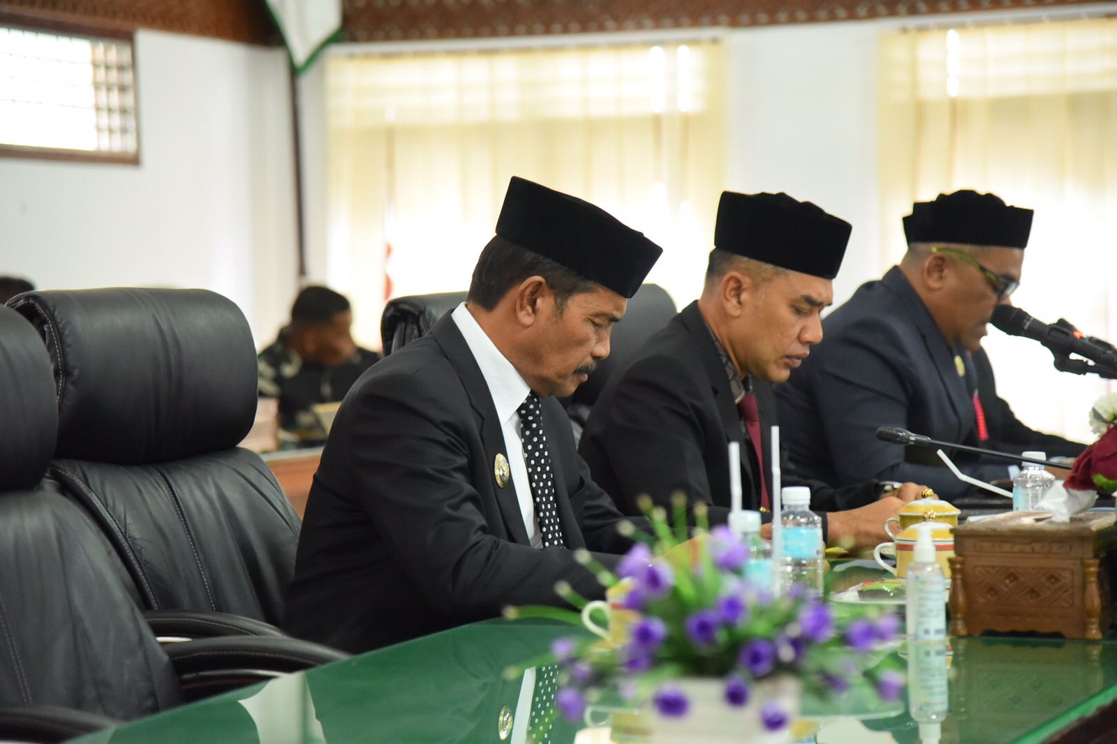 Menjawab pandangan umum mengenai pendapatan asli daerah (PAD), Wabup menjelaskan, pihaknya mengakui masih ada kendala, seperti keterbatasan SDM pengelola PAD, rendahnya kepatuhan wajib pajak, serta belum terdatanya beberapa objek pajak. Namun, pemerintah terus berupaya melakukan inovasi, termasuk digitalisasi perpajakan daerah, serta meningkatkan kerja sama lintas instansi.
