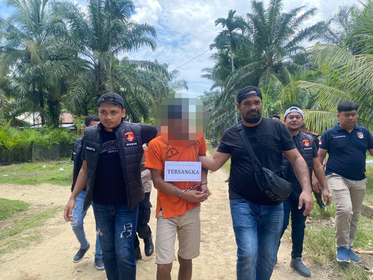 Rekonstruksi dilakukan di Gampong Seuneubok Pusaka, Kecamatan Trumon Timur, Kabupaten Aceh Selatan lokasi terjadinya peristiwa tragis tersebut, Selasa, 7 Oktober 2025.