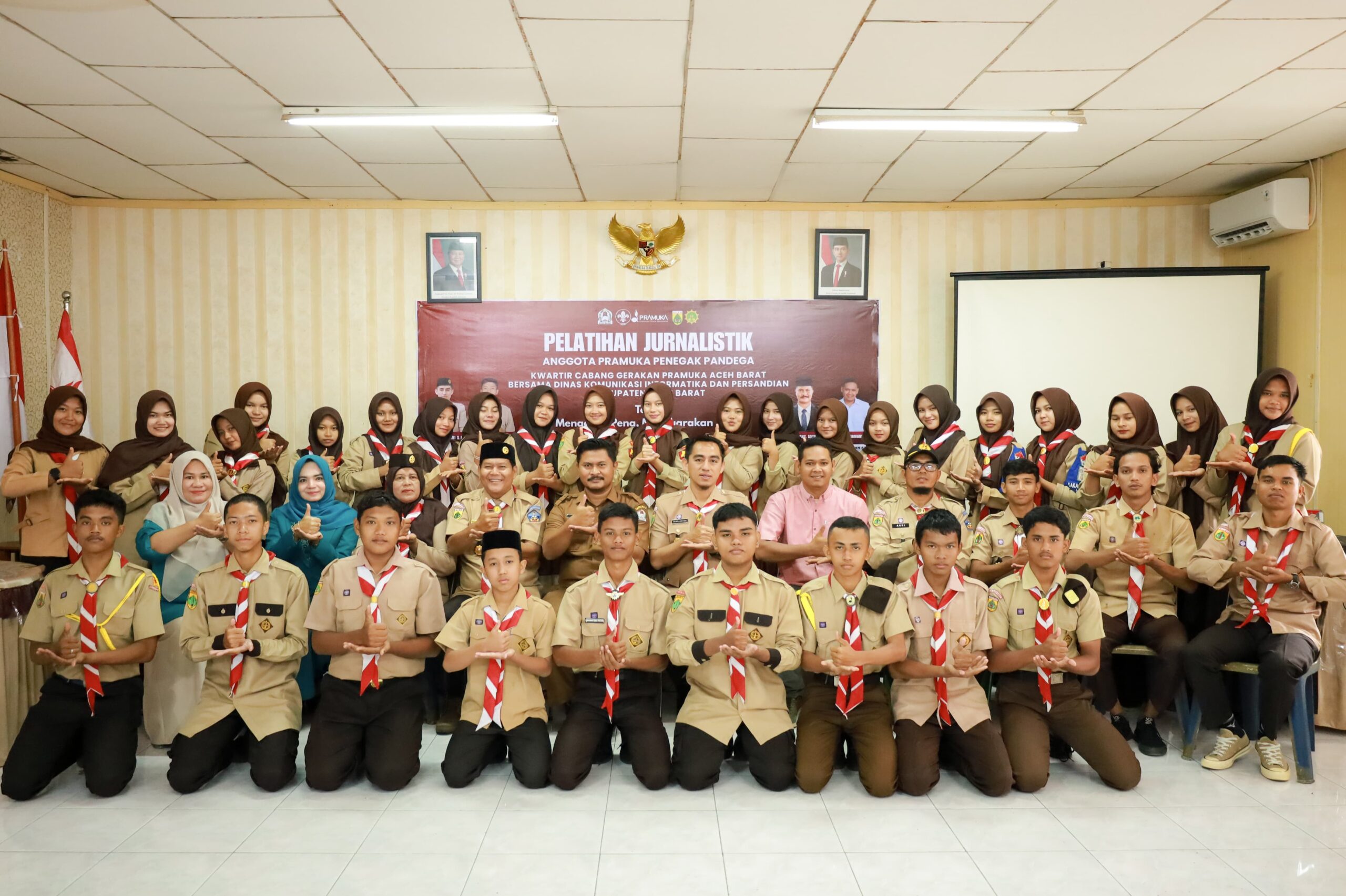 Habapublik.com, Meulaboh: Kwartir Cabang Gerakan Pramuka Aceh Barat bersama Diskominsa menggelar Pelatihan Jurnalistik bagi anggota Penegak dan Pandega di Gedung Ex BRR, Komplek Kantor Bupati Aceh Barat, Selasa (18/11/2025).