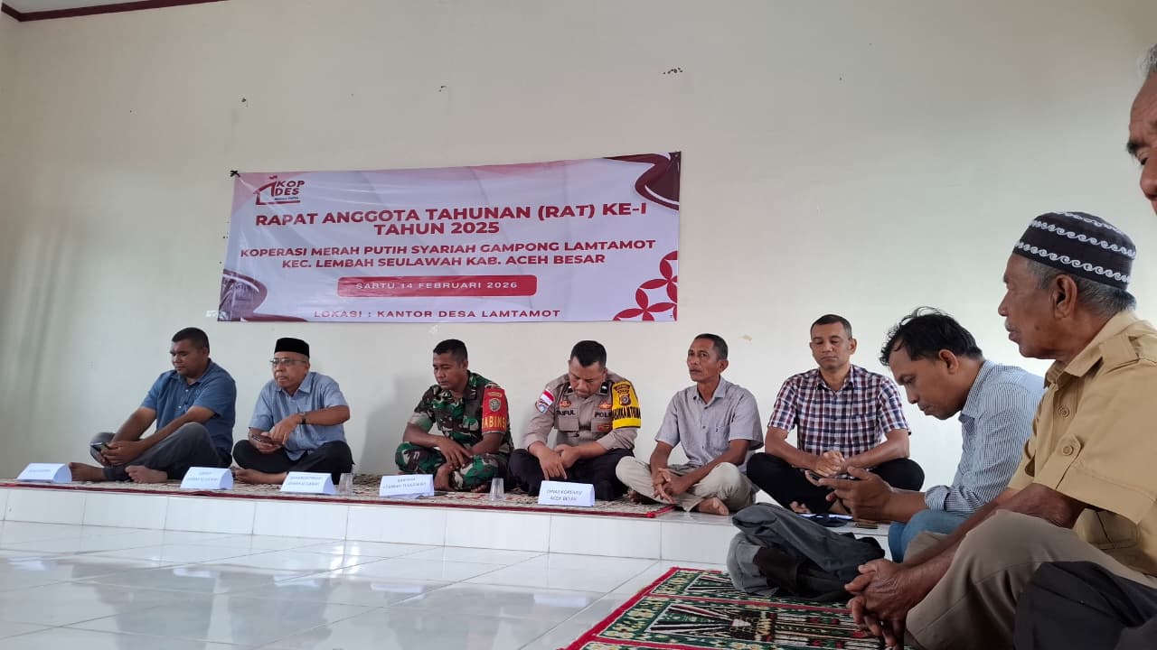 Rapat Anggota Koperasi Merah Putih Syariah Lamtamot yang dipimpin oleh Ketua Nukman, selain dihadiri oleh seluruh anggota, juga dihadiri oleh Baihaqi Keuchik gampong Lamtamot, Perwakilan Dinas Koperasi, Usaha Mikro, Kecil dan Perdagangan Aceh Besar Rijal dan Amri, Babinsa Koramil Lembah Seulawah Abdul mutaleb dan Babhinkantibmas Polsek Lembah Seulawah Saiful Bahri, Ketua MAA kecamatan Lembah Seulawah Muzakir Juned dan Ketua Tuha Peut Lamtamot Suryadi.